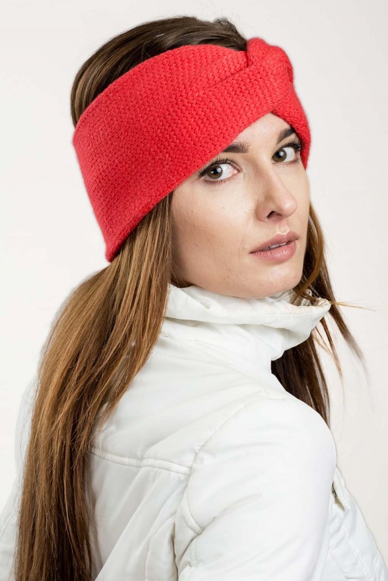 Ciepla przeplatana opaska (czerwona) z wełny z alpaką będzie doskonałą alternatywą dla zimowych czapek.Dobrze chroni przed niskimi temperaturami. Twarzowa, łatwa do założenia i noszenia.